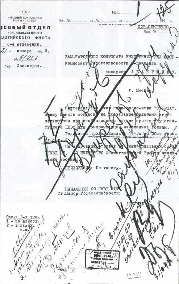 Письмо ОО НКВД КБФ о направлении плана радиоигры «Стрела». 21 января 1943 г.