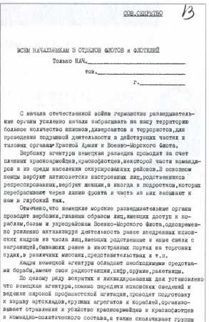 Директива 3-го Управления ВМФ СССР по борьбе с агентурой противника.