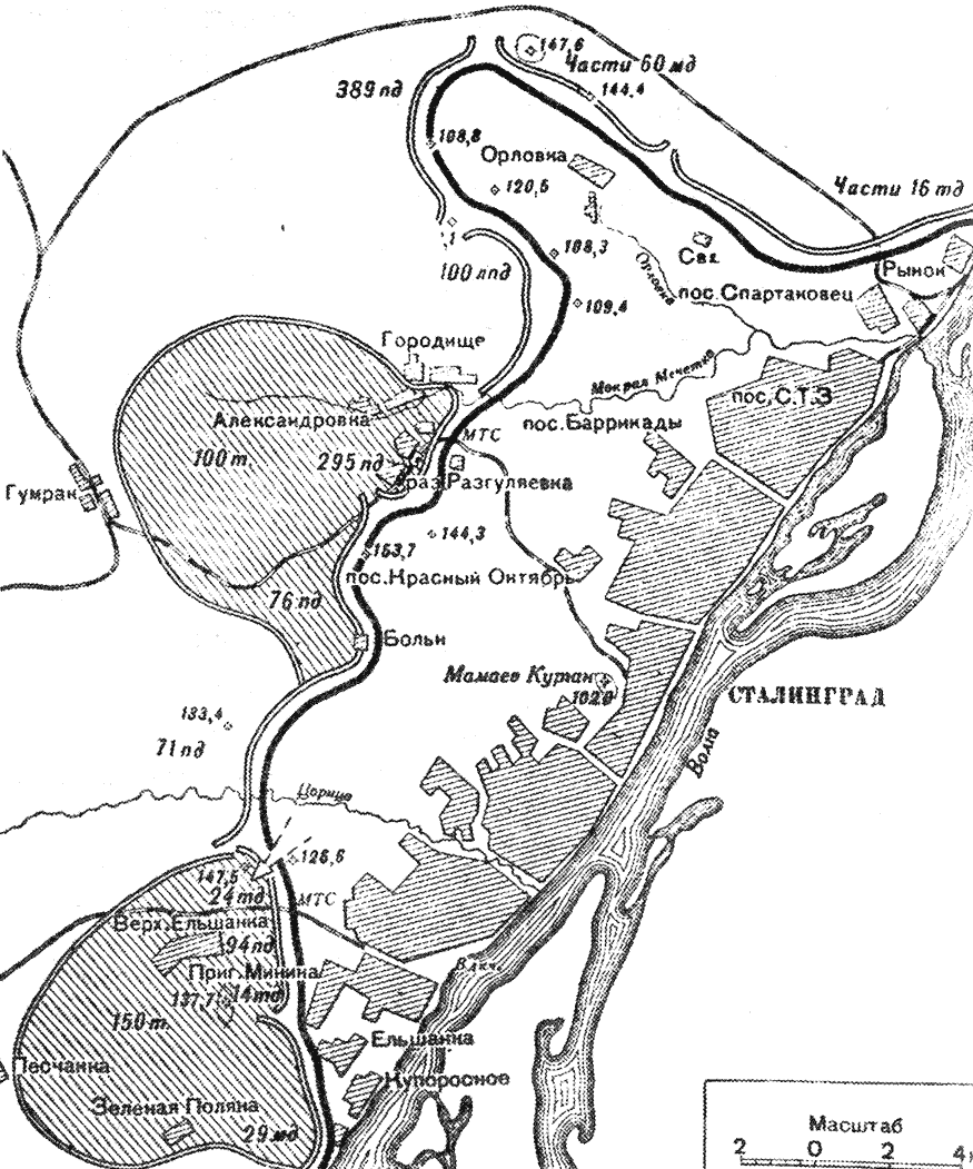 15 сентября 6-я армия Ф.Паулюса и 4-я танковая армия Г.Гота соединились в районе реки Царица. С этого момента за весь ход операций в городе стало отвечать командование 6-й армии. XXXXVIII танковый корпус был передан в армию Ф.Паулюса. Соответственно 4-я танковая армия получила задачу очистить от советских войск западный берег Волги южнее Сталинграда.