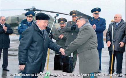 Заместитель министра обороны РФ генерал армии Николай Макаров желает экипажу Ми-28Н успешного полета, Ростов-на-Дону, 22 января 2008 г.