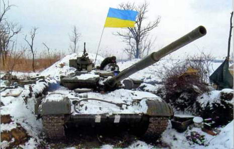 Типичный снимок Т-64БВ ВСУ периода зимних боев начала 2015 г.
