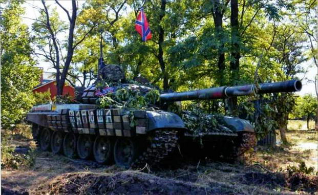 Танк Т-72Б ополчения на фронте. Донбасс, 2014 г.