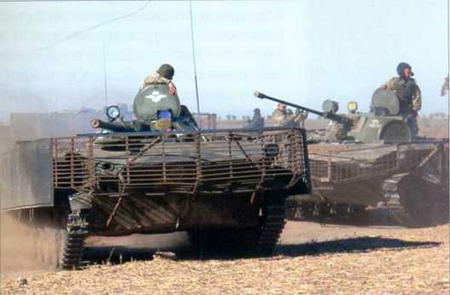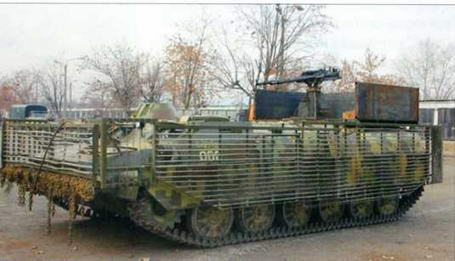 Украинские БМД-1 и БМД-2, оборудованные решетчатыми экранами.