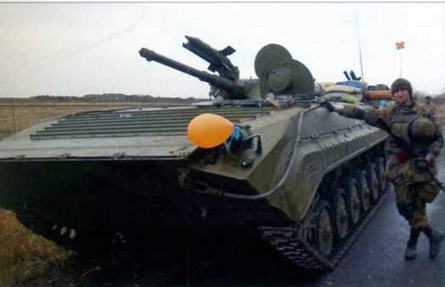 Украинские БМП-1 с установкой ПТУР «Малютка», хотя возможность использовать эти ракеты по «прямому назначению» весьма сомнительна.